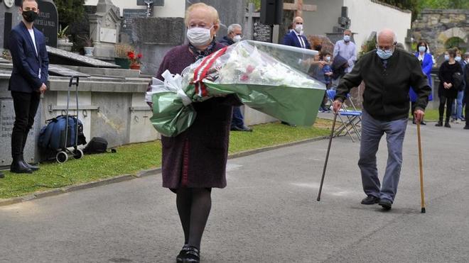 No fue un responso tradicional con múltiples instituciones, entidades y colectivos rindiendo homenaje a los caídos por las, como mínimo, 31 toneladas de bombas lanzadas sobre Gernika el 26 de abril de 1937. Pero sí que fue sentido. Y el acto del cementerio de Zallo tuvo a dos participantes principales: los supervivientes del ataque aéreo, en las figuras de Crucita Etxabe y Paco García, quienes depositaron ramos de flores en compañía del alcalde, José María Gorroño, y el lehendakari, Iñigo Urkullu.