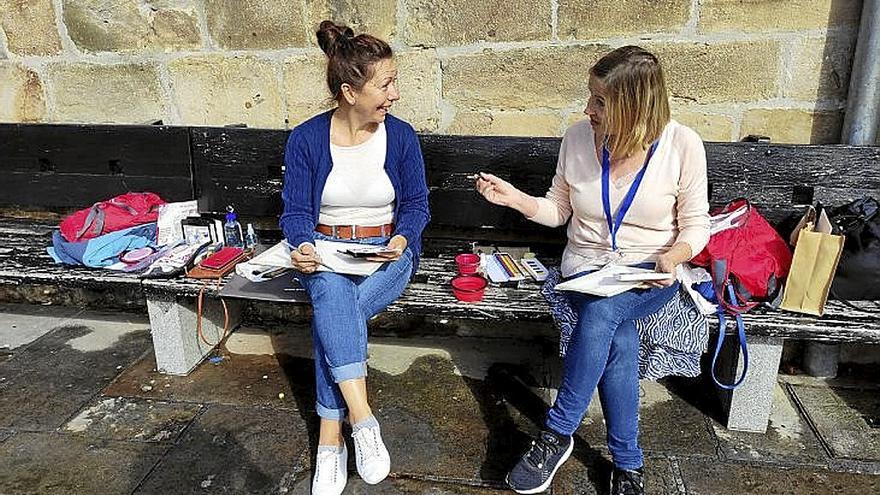 Aproximadamente cincuenta pintores y pintoras proceden del extranjero. Como las finlandesas Merja Sipiläinen-Kuhlberg y Victoria Yaroshik, que plasmaron la plaza de San Severino. “Si cierras los ojos se puede sentir el paso de tantas generaciones a través de los siglos. Intentamos captar la energía de los sitios y esta es preciosa”, dijeron.