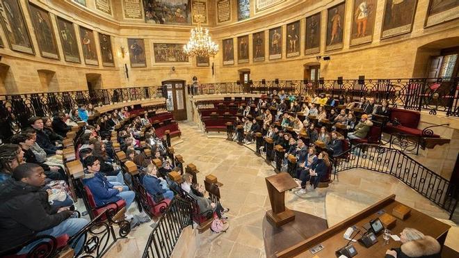 Más de un centenar de estudiantes de la universidad de humanidades y ciencias sociales Sciences Po de Poitiers de Francia han querido ahondar en la historia y patrimonio de uno de los sistemas parlamentarios más antiguos de Europa. Por ello, Ana Otadui, presidenta de la Cámara vizcaina, les ha recibido y mostrado la Casa de Juntas de Gernika.