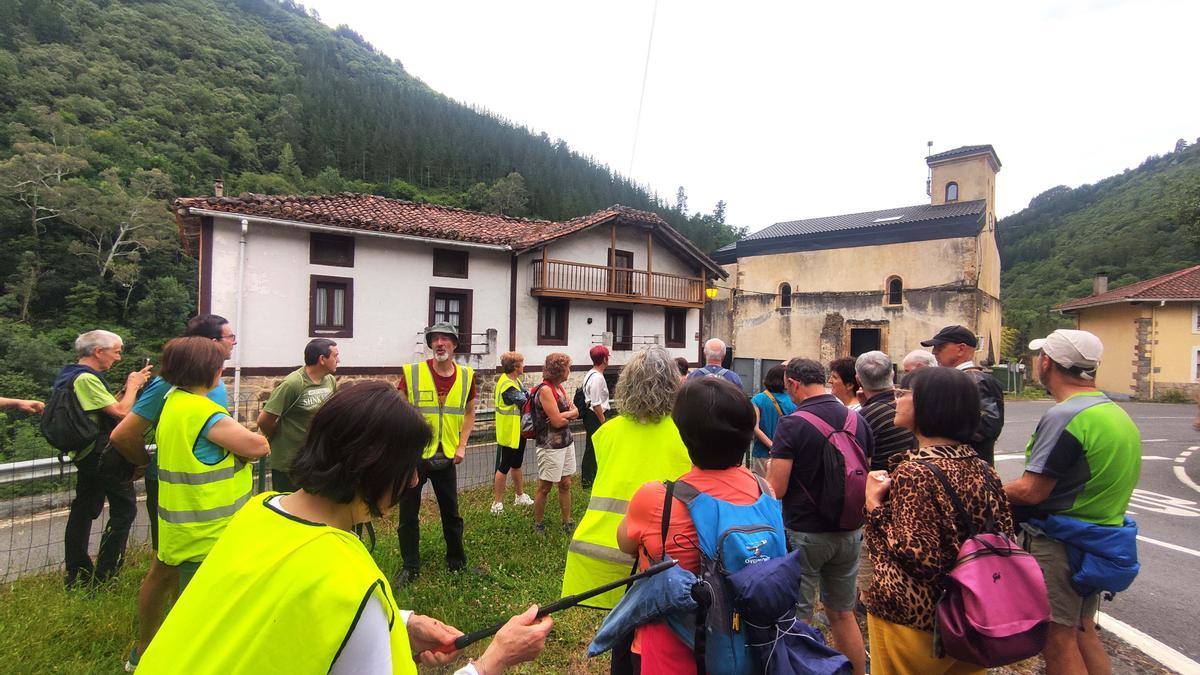 La sobrevolaba el tranvía aéreo más largo de Bizkaia, de 9,8 kilómetros, hasta Baltezana, desde donde el ferrocarril de la Compañía Setares lo transportaba hasta el cargadero de Saltacaballos; “lo desmantelaron en 1969, después de 60 años”, explicó Juan Manuel Román Campos en una introducción en el Museo de las Encartaciones antes de que las personas asistentes tomaran un autobús hasta las cercanías de Santa Cruz de Labarrieta, la iglesia “de alrededor de 1530” que saltó a los medios de comunicación por su transformación en vivienda, cuyas pinturas murales del siglo XVIII se pueden admirar en el museo.
