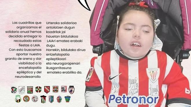 La pequeña también sufre una epilepsia altamente refractaria al tratamiento, que ha derivado en un retraso global severo del desarrollo psicomotor e intelectual. Sin embargo, detrás de su mirada dulce y su camiseta del Athletic, hay una historia de fuerza y amor. Por ello, las cuadrillas de Basauri han decidido este 2025 dedicar todos los fondos recaudados durante los actos solidarios de estas fiestas a ayudar a Laia y dar visibilidad a las enfermedades raras como la que ella padece.