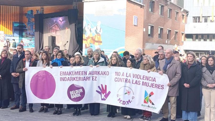 Barakaldo acaba 2025 de la misma manera que lo comenzó: clamando contra un nuevo asesinato machista. Si el 3 de enero Alicia, una vecina de 84 años moría a manos de su propio hijo en la calle Arrandi, este pasado domingo Josune, de 54 años fue asesinada por un hombre de 27 en su propia casa. Ante esta lacra que no sólo no parece cesar, sino que va en aumento, el pueblo de Barakaldo se ha concentrado este mediodía en la Herriko Plaza fabril para condenar firmemente este asesinato atroz. Hay silencios que son atronadores y el que ha imperado en la Herriko Plaza durante quince minutos han trasladado la tristeza, la rabia y el hartazgo que siente el pueblo barakaldarra ante la violencia machista. La concentración ha estado encabezada por la nutridísima representación institucional que ha acudido hasta la localidad fabril. Así, al frente de la pancarta han estado la diputada foral, Elixabete Etxanobe; la presidenta de las Juntas Generales, Ana Otadui; el subdelegado del Gobierno en Bizkaia, Carlos García Buendía: la alcadesa de Barakaldo, Amaia del Campo; la diputada foral de Igualdad, Teresa Laespada; la directora de Emakunde, Miren Elgarresta; el presidente del BBB, Iñigo Ansola y representantes de la Corporación municipal barakaldarra. Junto a todos ellos, decenas de barakaldarras que se han querido sumar a este acto de repulsa y condena del asesinato de Josune.