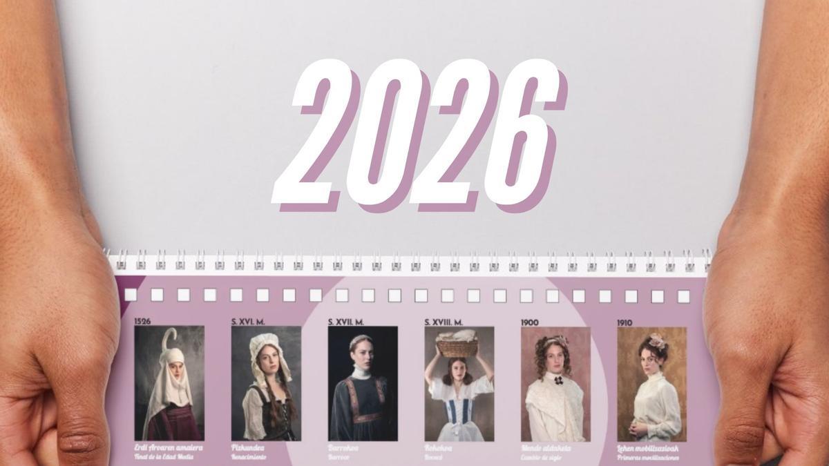 El Ayuntamiento de Leioa ha conjugado en su calendario de 2026 igualdad y 500 aniversario, dos hitos que serán muy relevantes en el nuevo año. Por eso, cada mes lleva la imagen de una mujer en una época histórica distinta de este medio milenio.