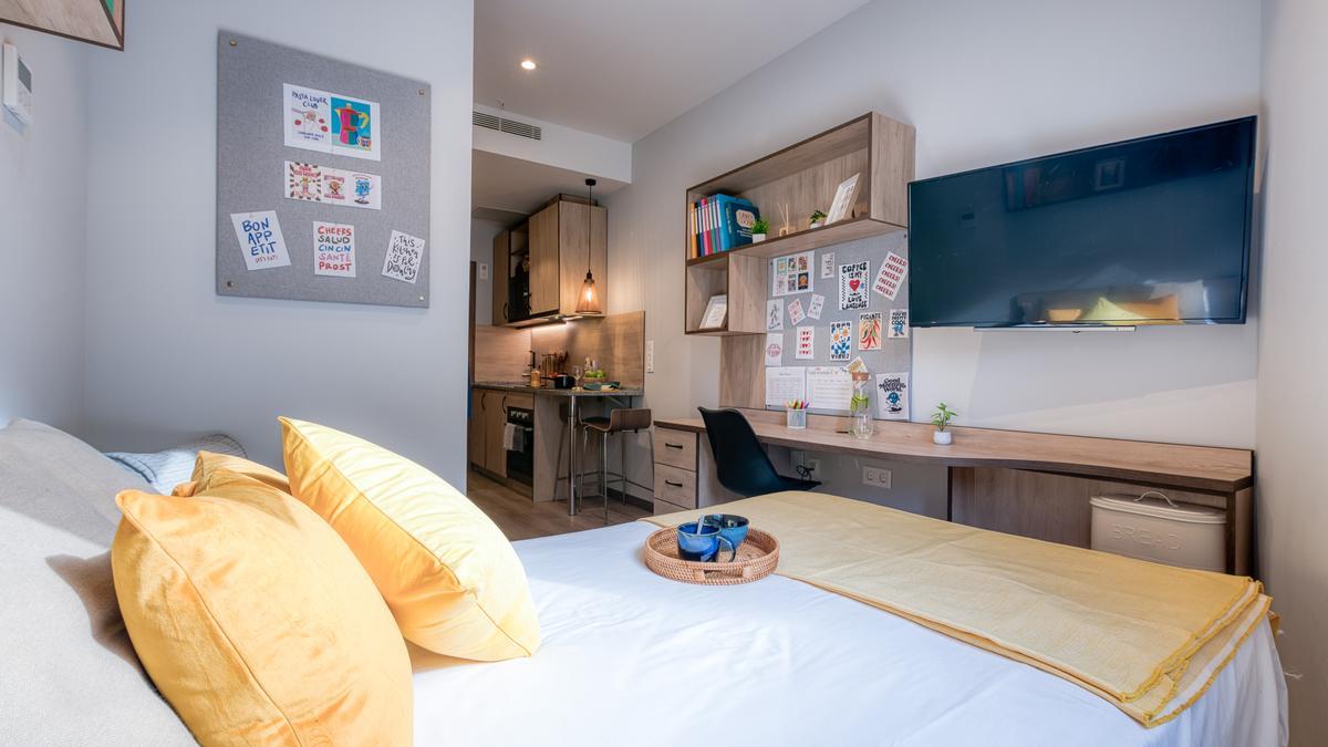 Sus instalaciones están cuidadosamente pensadas y diseñadas para dar respuesta a todas las necesidades de los residentes: amplias habitaciones individuales con baño, cocina y zona de estudio. Además, sus zonas comunes incluyen biblioteca, salas privadas de estudio, salas de juegos y cine, gimnasio, terrazas, txokos y, aparcamiento para bicicletas y coches en algunas residencias.