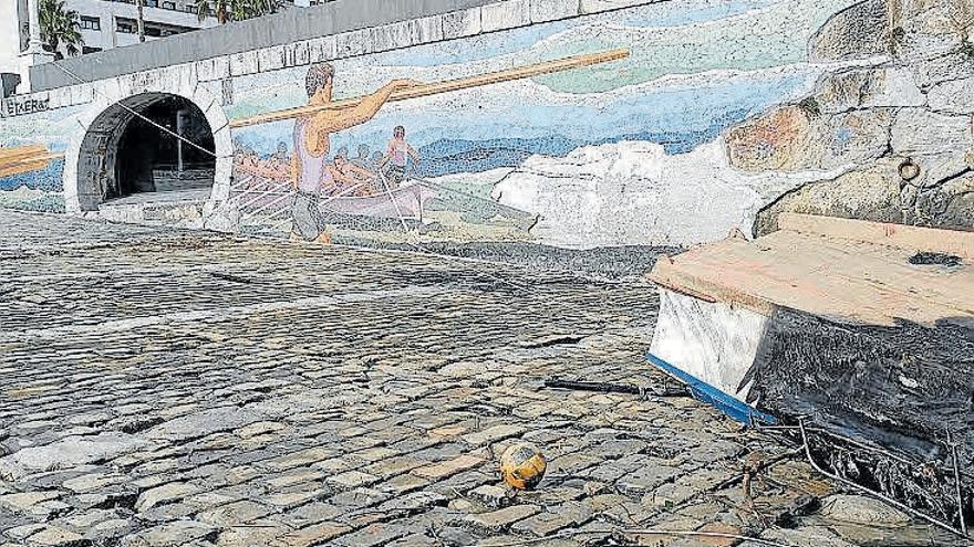 El pasado domingo el puerto pesquero de Santurtzi amaneció con la triste noticia de que unas personas habían vandalizado el mural ubicado en la rampa del puerto y que representa la figura de un remero. Este martes a mediodía, se podía ver los daños causados por el acto vandálico, una acción que no se redujo sólo al mural, puesto que se podía ver una embarcación parcialmente calcinada. De hecho, todo apunta a que el fuego originado en la embarcación fuese el detonante de los daños en este mural creado con cerámica por el artista santurtziarra Jon Mao. En la jornada de ayer, el Ayuntamiento de Santurtzi condenó enérgicamente este acto vandálico y señaló que “este tipo de actos no son tolerables en nuestro municipio”.