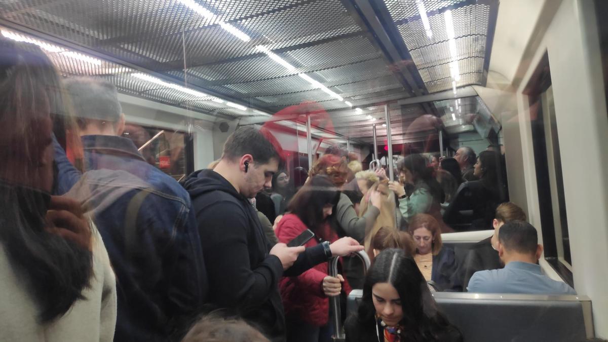 Los retrasos, sin embargo, se han notado desde primeras horas. En estaciones como en la de Ariz en Basauri, las esperas han superado los 20 minutos y los viajeros se han acumulado en el andén, provocando que los vagones se hayan llenado. En la estación de Barakaldo por su parte, una unidad procedente de Kabiezes con destino Basauri ha tenido que ser desalojada por exceso de aforo y la imposibilidad de cerrar las puertas de los vagones y garantizar la seguridad de los viajeros.