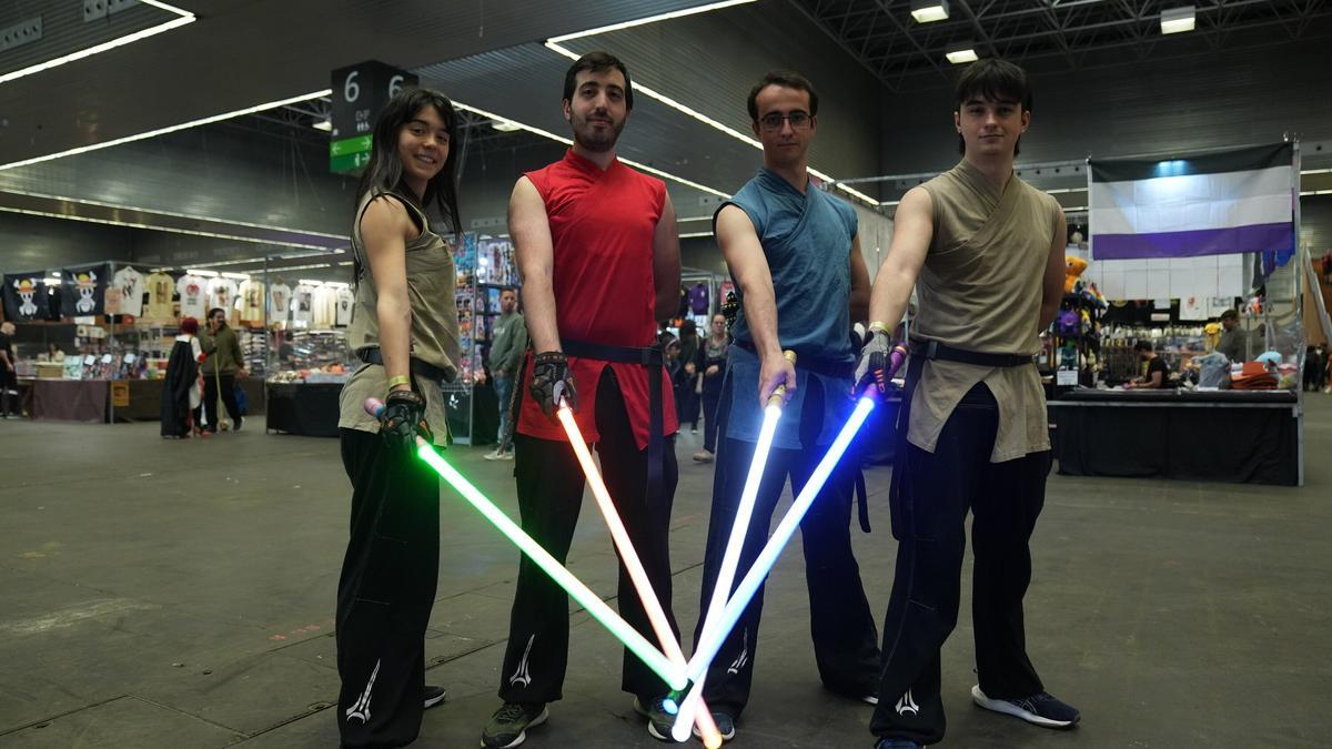 Se trata de un “deporte moderno” que convierte el combate con sables de luz, inspirado en la mundialmente reconocida saga de Star Wars, aunque lo definen como “un tipo de esgrima”. Es una actividad con sus reglas y su manera de ganar. “Venimos a enseñar y a dar a conocer un poco el deporte”, expone Iñarra mientras sujeta su espada láser. Un grupo que ha tenido la esperanza de que a lo largo de la jornada se acercasen personas interesadas en el deporte.
