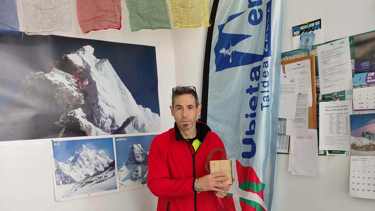 Y el viernes se retomará la cita de la mano de los Hermanos Pou, que presentarán su proyecto El desafío de los cuatro elementos. El sábado el evento culminará con una gala que aunará recuerdos, emoción y agradecimientos. Desde las 19.30 horas se proyectará un documental sobre el Club Alpino Ubietamendi y se entregará el Urrezko mosketoia a una persona ligada al montañismo. Su identidad permanece en secreto para preservar el efecto sorpresa. Por eso, el presidente se inmortaliza para DEIA con el trofeo, pero tapando el nombre.
