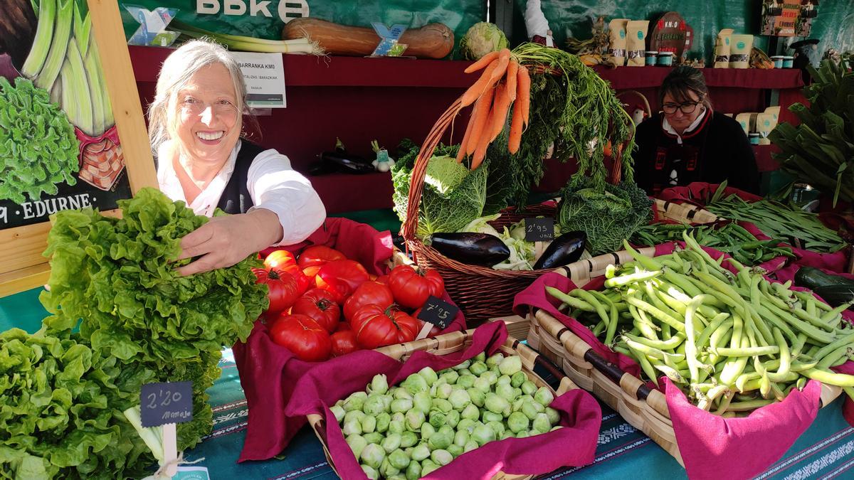 “Mi suegra venía hace muchos años”, evocó Edurne Asensio desde su stand repleto de alimentos de temporada: “habas, coliflor, repollos, tomates, calabazas, alubias...”. En un contexto internacional incierto espera que los precios no suban y se valore “la calidad” de lo cultivado en el campo. Lo probó también la cesta con “productos kilómetro cero donados por productores que sorteó Andra Mari Dantza Taldea, señaló Janire Rojo, para sufragar su actividad. Hablando de kilómetros, el jueves se sumarán al paso de la Korrika por Güeñes.