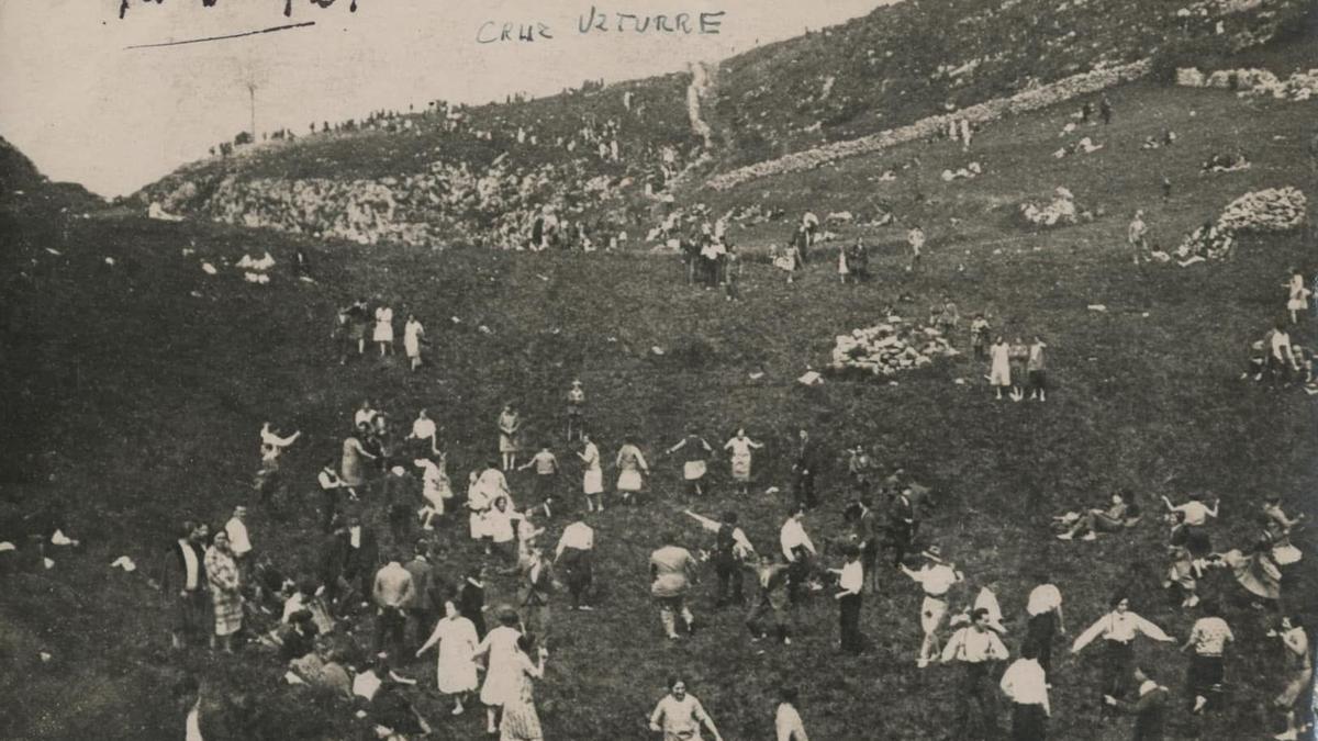 El 1 de mayo de 1927 se inauguró la cruz de Uzturre y costó 2000 pesetas (12,02 €). Fue sufragada con aportaciones populares que promovió Patxi Txorti. Instalaron dos placas de mármol, una con versos dedicados por Emeterio Arrese. También la barandilla en el borde del abismo. Al año siguiente fijaron al suelo el buzón en su cota más alta. Y cayó la cruz la noche del 15 de febrero de 1941, reponiéndose inmediatamente. La de origen medía 6 metros de altura. La actual mide 10,50 m