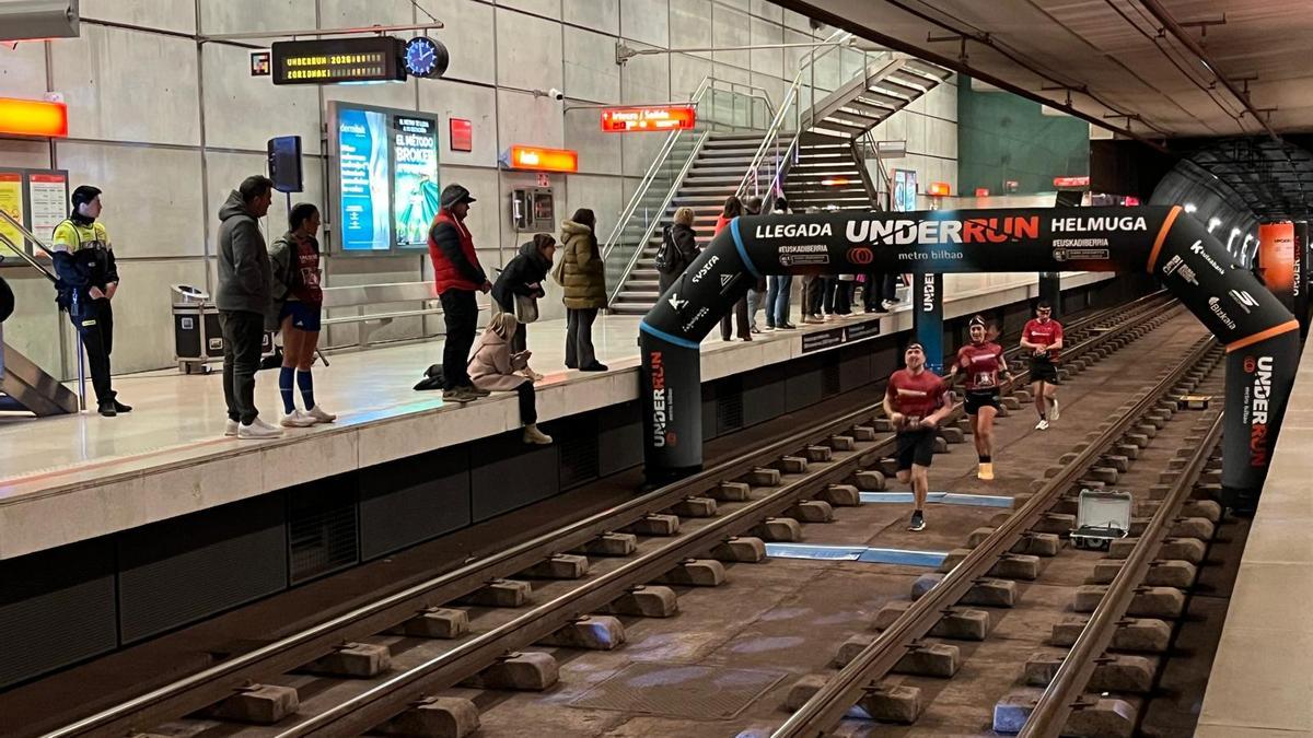 A las 23.00 horas de este pasado domingo la estación de metro de Ansio presentaba una imagen muy poco habitual. La calma propia de última hora se vio interrumpida por los pocos que decidieron estirar el fin de semana hasta el extremo y coger el último tren de vuelta a casa, y por un dj que amenizaba la espera de los 210 afortunados y afortunadas que a partir de la 01.00 de la madrugada disfrutaron de la tercera edición de la carrera Underrun Metro Bilbao.