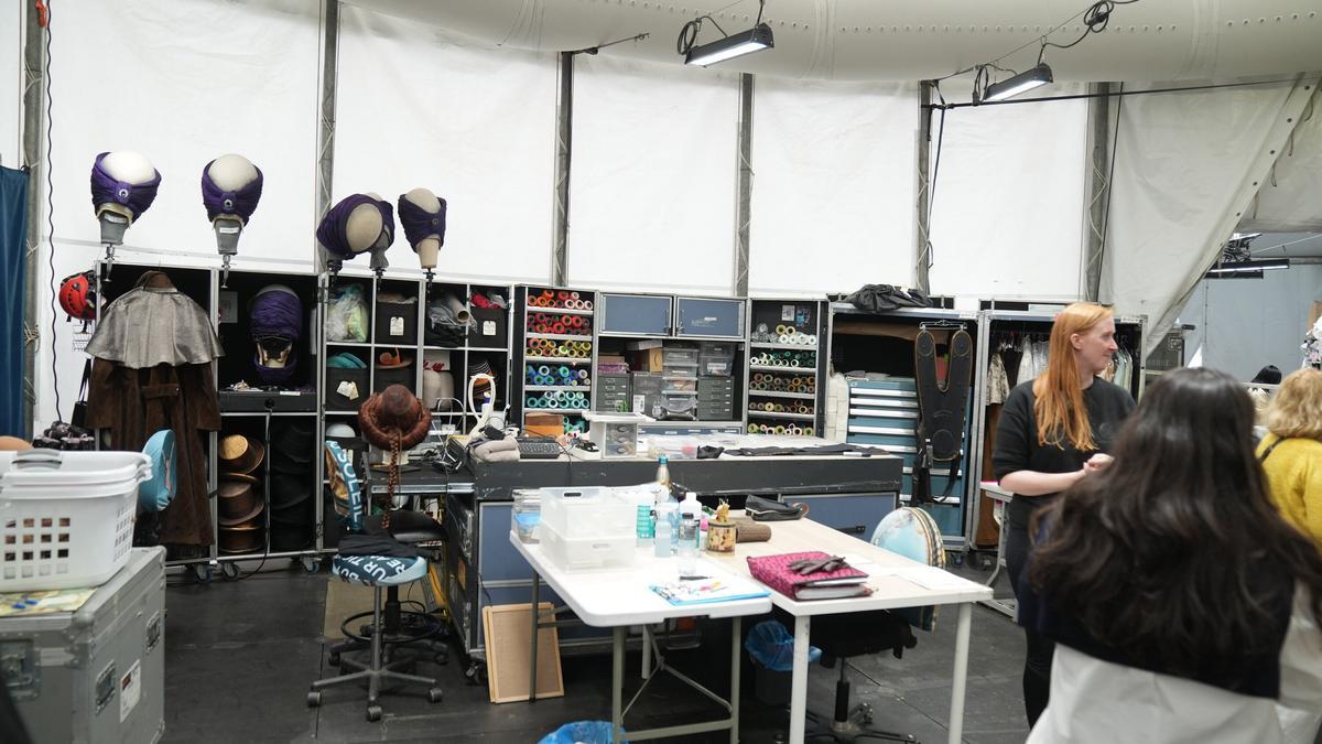 Hablando de vestuario, hay un total de mil prendas que conforman las vestimentas de quienes salen a escena y cada artista cuenta con un par de uniformes. Así puede actuar con tranquilidad en los días que hay doble y hasta triple función, ya que las prendas se lavan después de cada pase. Las jornadas de tres funciones se trabaja contrarreloj en este aspecto, ya que hay que lavar y secar los uniformes en el tiempo que pasa entre el final de la primera función y el inicio de la tercera. Entre las prendas, la más sofisticada y más complicada de realizar es la barriga del Microcosmos, una pieza que pesa nueve kilos, cuya confección ha llevado más de 250 horas de trabajo y que cuenta con un sistema de ventilación en el interior para que el artista pase el mínimo calor posible. A ese millar de prendas, hay que sumarles los 7.000 complementos existentes, que se cuidan con mucho mimo y en el caso de su estancia en Barakaldo, el Circo del Sol ha contratado a dos personas que, entre sus tareas, estará el mantenimiento y cuidado de estos complementos. El maquillaje es una parte muy importante y, dependiendo de cada personaje, cada artista tarda en maquillarse -aprenden a hacerlo ellos mismos- entre 45 minutos y dos horas.