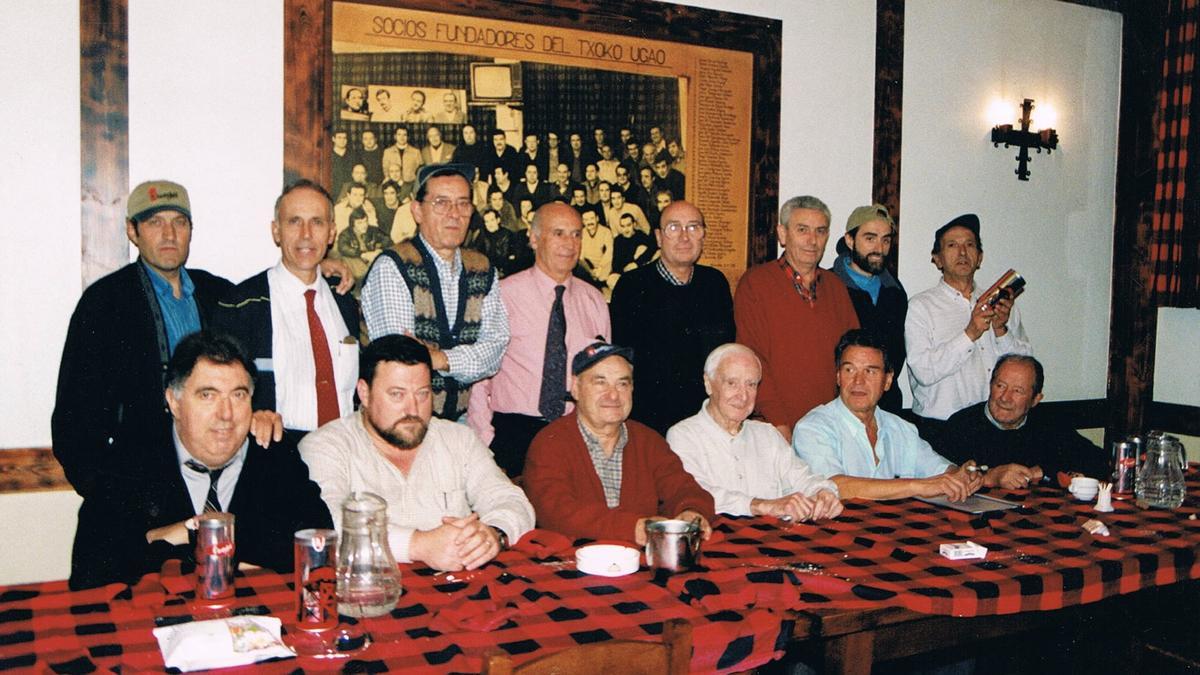 Fue un encuentro, en el siglo pasado, en el Txoko Ugao, en el que homenajeamos, en privado, a Sheve Peña Albizu, el montañero andarín de Tolosa. Con todos los presentes tenía relación, pero especialmente con Jesús de la Fuente y mi aita, Javier García Rodrigo, quienes se desvivían por atenderle, llevándole a cimas, homenajes, eran sus acompañantes, escoltas y chóferes.