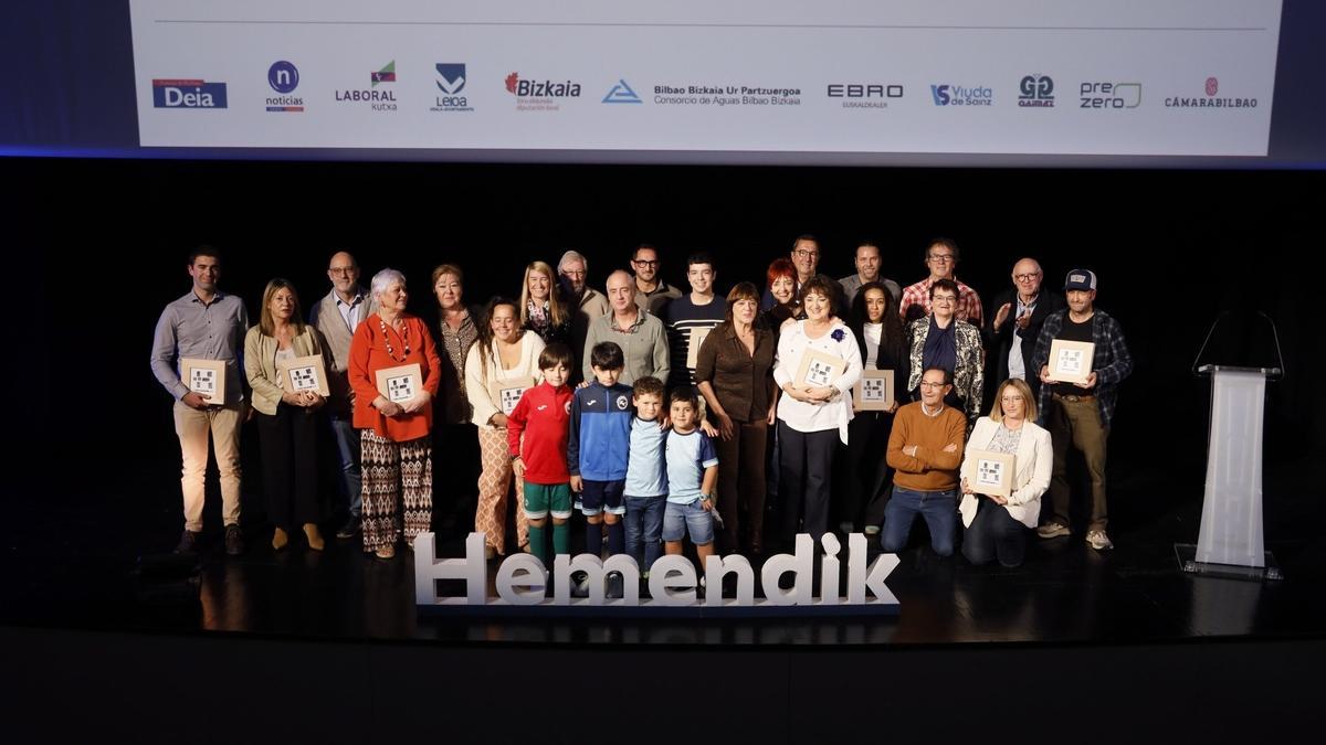 Leioa abrió sus acogedores brazos para recibir la gala de los DEIA Laboral Kutxa Hemendik Sariak de Eskuinaldea y Uribe Kosta. Fue un evento cubierto por el buen humor –porque de eso le sobra al presentador, Jon Gómez– y que reivindicó el valor del tiempo, ese que se escurre entre los dedos y que estos doce galardonados ceden a los demás: al organizar actos en sus municipios, al enseñar y educar, al formar en deporte y en vida, al atender y preparar todo con cariño tras el mostrador o en la cocina... Y también, incluso, desde la política, porque incluso ahí, hay quien se lo curra por los demás.