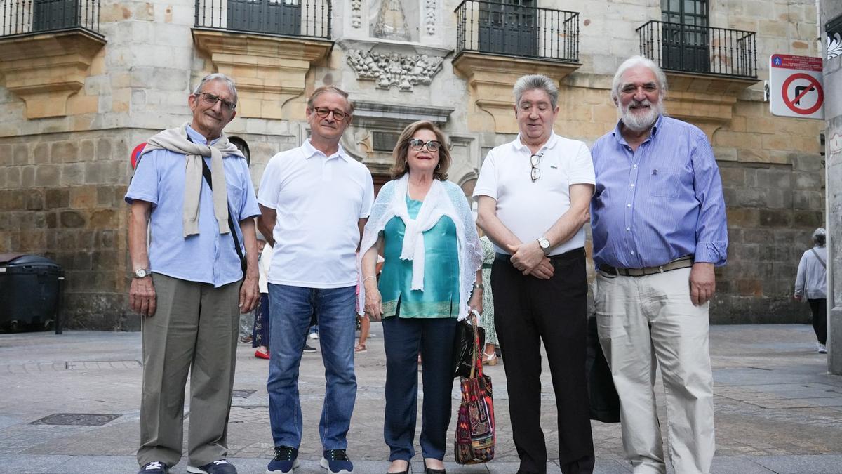 EN el cruce de las calles Santa María y Pelota se fueron reuniendo rostros conocidos de la Asociación Artística Vizcaína a medida que se acercaban las siete de la tarde de ayer. Era como si buscaran la protección de la Virgen de Begoña, que todo lo vigila desde su coqueta hornacina de la fachada del palacio Yohn. A veces llegaban a confundirse con los corritos de turistas que, en torno a un gesticulante guía, trataban de ver la espadaña de la basílica desde la losa que señala el punto exacto en el cantón.