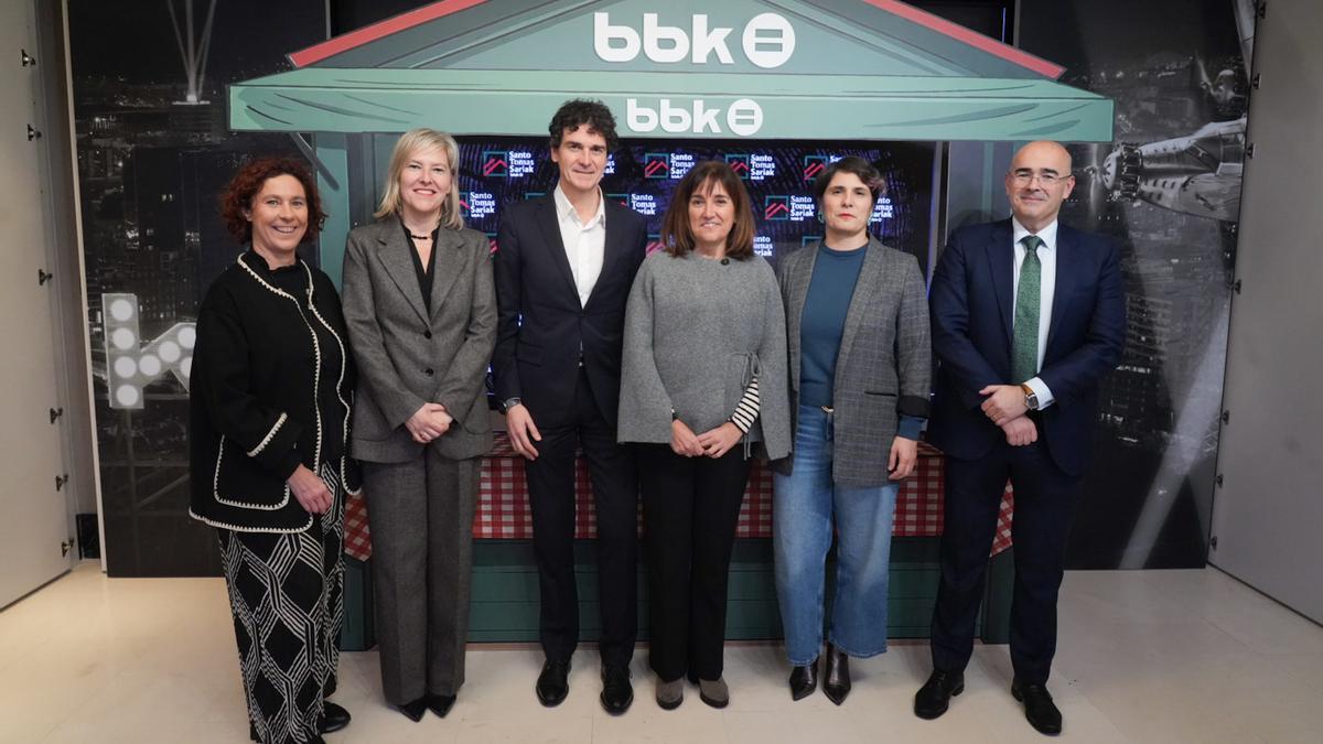 SANTO Tomás es fiesta y jolgorio en Bilbao. El evento reúne a más de 100.000 personas. El alma de la celebración viene del entorno de la ciudad. Mujeres y hombres que trabajan dura y amorosamente por mantener eso que llamámamos productos de kilómetro cero. Son guardianes de sabores, aromas y texturas que se conservan, en muchos casos, gracias al saber hacer acumulado de varias generaciones de la misma familia. Y justo eso es lo que la BBK premió ayer en la sala con su nombre que ilumina un tramo de la Gran Vía.