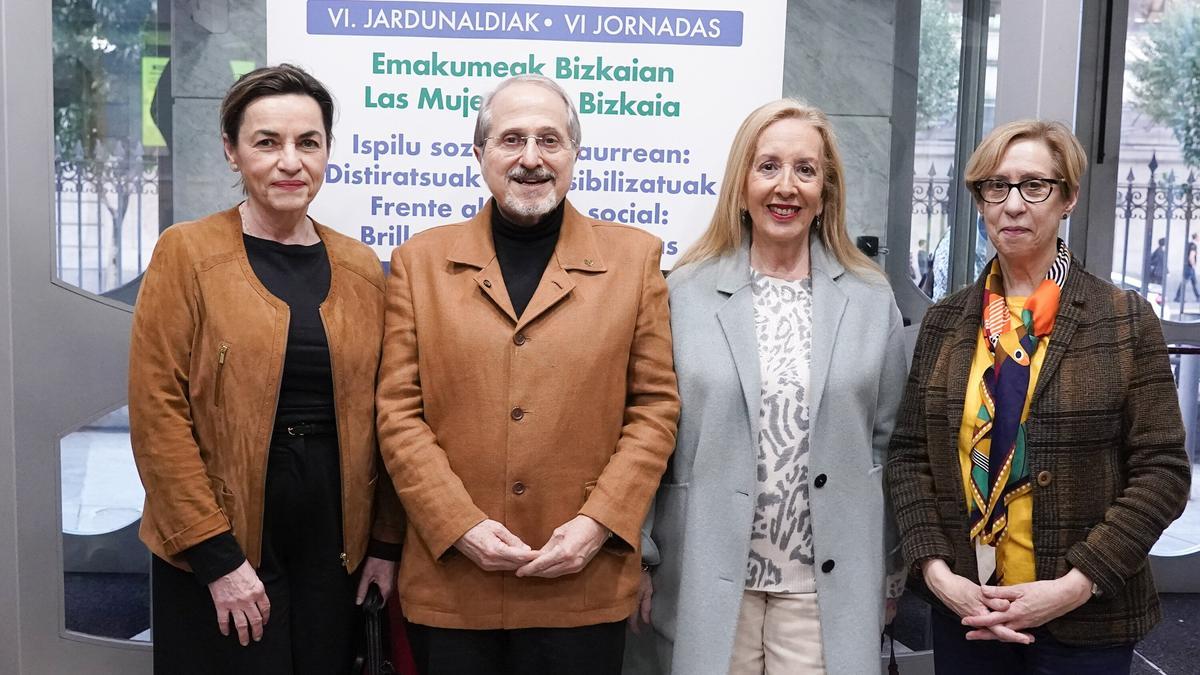 Estaba anunciada la presencia de la vicelehendakari primera y consejera de Cultura y políticas lingüísticas del Gobierno Vasco, Ibone Bengoetxea pero la tormenta de actualidad le impidió llegar. Vamos, que hubo de quedarse en Gasteiz para acompañar al Baskonia en la celebración del título de Copa en modo David frente a Goliath. Fue la única ausencia en una tarde en la que las campanas sonaron para llamar a cuatro mujeres que han avanzado por el camino del éxito en el campo de la cultura.