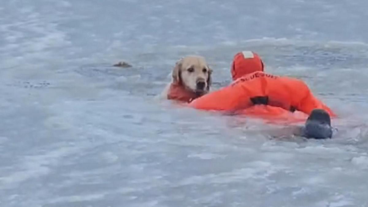 Uno de los bomberos se deslizó por la capa de hielo atado con una cuerda. Se lanzó al agua en la zona que se encontraba el can y logró agarrarlo, para que en ese momento sus compañeros pudieran tirar de la cuerda y devolver a hombre y perro a la superficie, culminando con éxito un rescate que se ha hecho viral en las redes sociales.