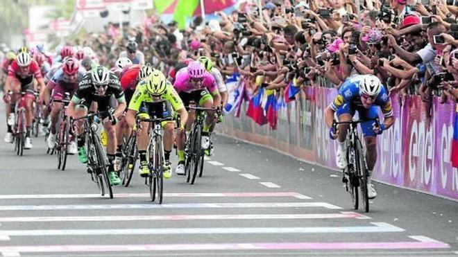 En la ciudad hebrea la jerarquía fue escasa y el revuelo considerable. Hubo anarquía y cierto aire de turba a la búsqueda de una asalto. Se apilaron los nervios, la tensión y la algarabía en un país que el día de descanso judío se lanzó a la carretera a gritar, aplaudir, agitar banderas y festejar la fiesta. Estaba de picnic Israel, entusiasmado ante el ajetreo del Giro, con ese aspecto de carnaval por el colorido y por el escaso orden de un final que parecían todos los finales porque muchos imaginaban el suyo. Como en las tómbolas donde todos sueñan con el gran premio y se llevan, con suerte, un peluche fardón hasta que uno se cansa de él y lo tira en una papelera. Si la noche va bien se lo da algún niño. Ese espíritu revoltoso y caótico agarró un esprint sin camerinos ni luces de Broadway. Nadie entre los esprinters disponía de una puerta con su nombre y su apellido escrito en letras doradas. Si acaso, algún destello de tonos plata.
