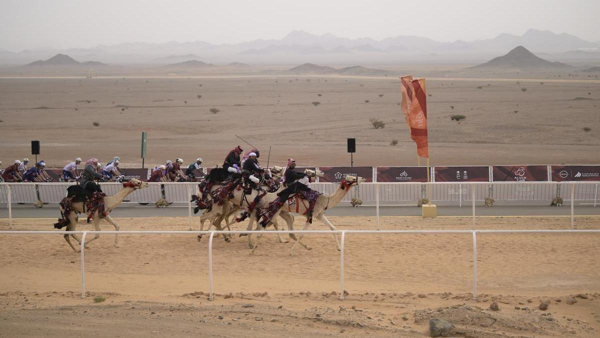 Esas carreras sin arena pero con pulsión y pálpito reunían a más público que el AlUla Tour. La organización de la prueba dispuso una competición entre hábiles jinetes de dromedarios que corrían en paralelo al pelotón, al que nadie hacia demasiado caso. Las bicis no son para el desierto. Sí lo son las carreras de dromedarios.