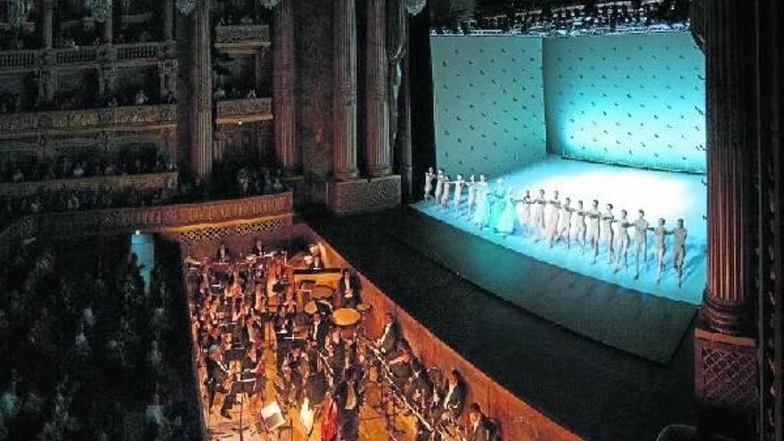 El sol iba declinando y arrancaba cegadores destellos a los enrejados y cubiertas doradas de los edificios palaciegos. Durante el día el mercurio había rozado los 30 grados y la temperatura en el interior de la ópera era alta. Los 700 espectadores que agotaron las entradas llegaban y tomaban asiento en unas butacas cuyo precio medio es de 100 euros. No es barato disfrutar de un ballet en tan impresionante lugar, por lo que antes del comienzo de la función, la gente aprovechaba para fotografiarse cual Borbón en el palco real o regocijarse en la belleza del coliseo: se podría estar horas admirando las columnas de capiteles corintios, las paredes de madera policromada que parecen de piedra, la maravillosa bóveda o los espejos que hacen que las suntuosas quince lámparas de araña parezcan muchas más.