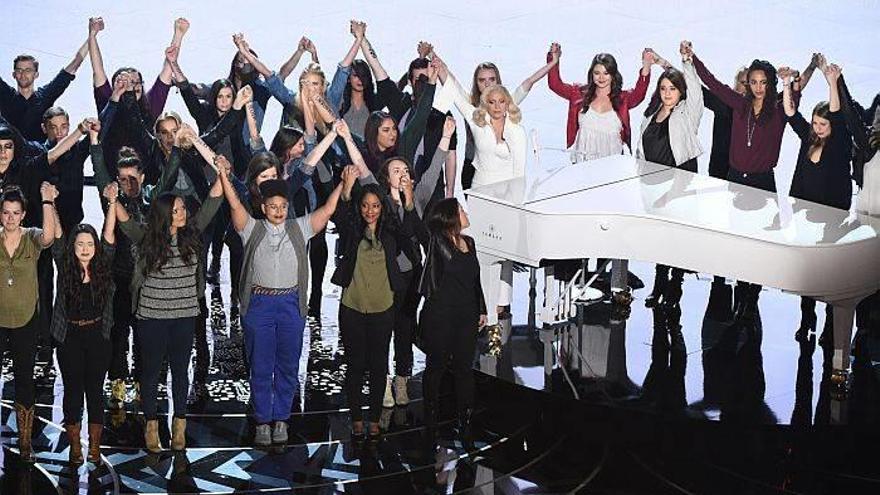Gaga que emocionó a todo el Teatro Dolby -se vio a Kate Winslet entre lágrimas-, cantó "Til It Happens To You", perteneciente a la película "The