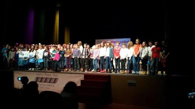 Nafarroako lau ikastetxe publiko eta ikastola desberdinetako 100 haur, gazte eta musikari oholtzara atera ziren guztira 15 kanta eskainiz.