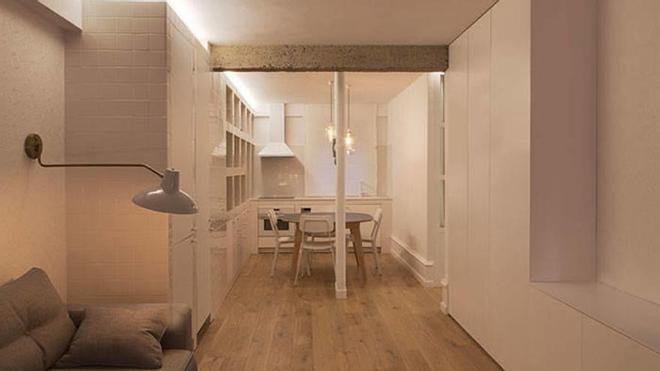 ESPAZIOAREN IRAKURKETA Arkitektura ez dagoen lekuan, arkitektura eraiki izenburuarekin laburbildu daiteke Donostiako Amara auzoan kokatutako etxebizitza baten eraldaketa prozesua, Aranaeskisabel-en egiletza duena (Amaia Arana eta Esther Eskisabel arkitektoek osaturiko lan talde ordiziarra). Arkitekturaren elementuak, kasu honetan, sukaldearen eraikuntza, gelen arteko banaketa orriak eta argiztapen artifiziala dira. Lan honen abilezia espazioaren irakurketan datza. Argitasun gutxiko 7. solairuko etxebizitza baten aurrean, arkitekturarekin espazioa handitzeko helburua ezarri diote beren lanari. Jatorrizko egoeran, egongelak etxe-irlaren patioko argia arnasten du, eta sukaldeak eta logelek barne patiokoa. Etxearen harrera pasabide ilun bat da, egongelara eta sukaldera eramaten zaituena.