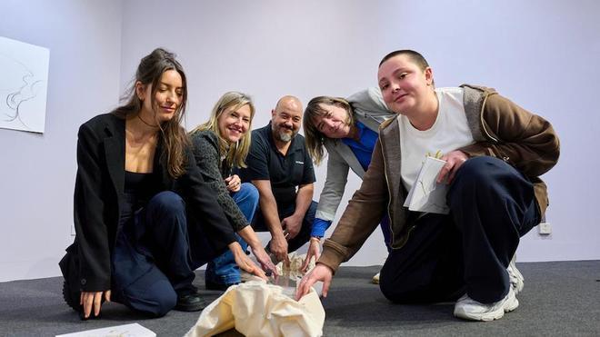La exposición plantea así un encuentro entre dos modos de atender lo material y lo sensible: el de Sofía, desde el pliegue, la envoltura y la construcción; y el de Lucas, desde la línea, el vacío y la vibración. “Ambos artistas nos invitan a mirar con detenimiento este diálogo artístico que transita entre la materia y la palabra. Es un ir y venir entre dos, una conversación entre materiales, cuerpos y miradas que revela la fragilidad y el equilibrio en el proceso de creación”, ha resumido la presidenta de las Juntas Generales de Bizkaia, Ana Otadui Biteri, quien ha estado acompañada de otros integrantes de la Mesa para arropar a los jóvenes artistas.