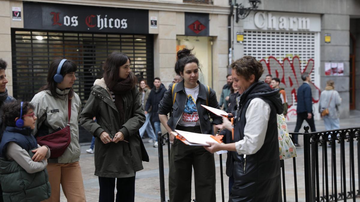 “Llevamos el teatro a la calle utilizando la fórmula del free tour para poder hablar de la turistificación”,ha explicado Juana Lor poco antes de comenzar esta acción, que está a caballo entre el teatro relacional “que es cuando se busca que el público de alguna forma sea protagonista sin sentir la presión de los focos, pero que tenga voz, y por otro lado, es una performance porque incluye elementos teatrales”.