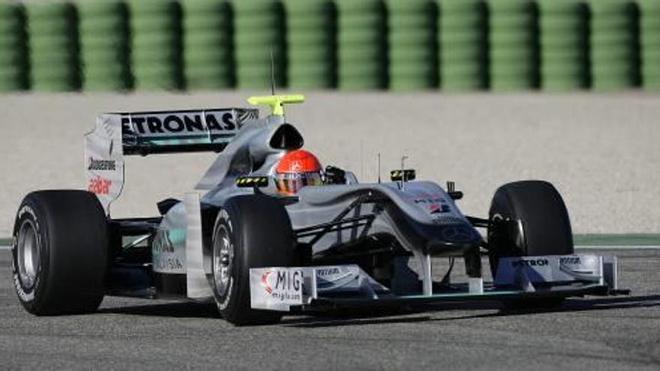 VALENCIA. Schumacher, de 41 años y siete veces campeón mundial, dio 39 giros al circuito Ricardo Tormo con un mejor tiempo de 1:12,947 minutos para quedar sólo por detrás del brasileño Felipe Massa y el español Pedro de la Rosa.