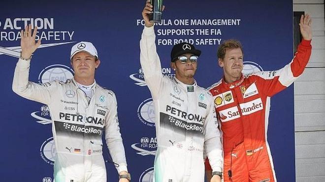 El cuádruple campeón mundial alemán Sebastian Vettel (Ferrari) saldrá tercero, al lado de su excompañero australiano Daniel Ricciardo (Red Bull) desde la segunda hilera. Desde la tercera arrancarán los dos finlandeses, Kimi Raikkonen (Ferrari) y Valtteri Bottas (Williams).