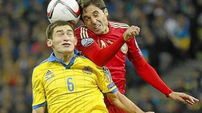 De Gea estuvo igual de brillante. La defensa de experimento, con Etxeita debutando y Nacho como pareja inédita, concedió demasiadas ocasiones a Ucrania. Nada más arrancar el encuentro Kravets lanzó un disparo cruzado que desvió Rotan para acariciar el gol. Al cuarto de hora provocó una parada de balonmano del portero español, que en un minuto realizó dos grandes intervenciones, con los pies también al disparo en el área chica de nuevo de Rotan.