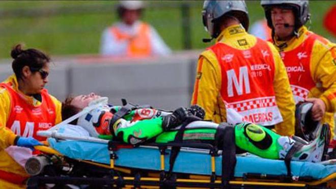 Allí se sometió a pruebas para evaluar los traumatismos craneoencefálico y torácico sufridos en el accidente y además se le descubrieron una “fractura bimaleolar en la pierna derecha”, así como “la vértebra T12” afectada, según informó uno de los médicos del Campeonato del Mundo, el doctor Xavier Mir, que es quien le asistió y quien está llevando a cabo el seguimiento médico del piloto bilbaino. “Al parecer esa vértebra se ha hundido, pero no comprime la médula. Del mismo modo, parece estable y que no tiene tendencia a hundirse más”, explicó Mir, por lo que esa lesión no le obligará a pasar por el quirófano, si bien, las fracturas en el tobillo sí deberán operarse. Lo que está por decidirse es si el bilbaino aguardará a su regreso a España para pasar por el quirófano.
