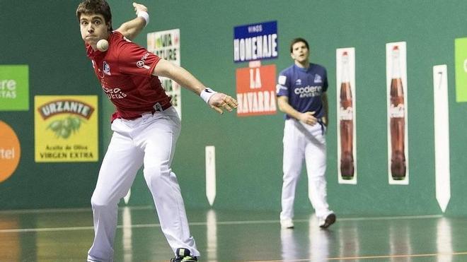 Bien es cierto que, a pesar de que musculatura del partido era desigual y el inicio fue colorado de modo claro -Irribarria metió tres ganchos hasta el 4-1-, los azules pudieron poner algo de pimienta en el compromiso. Fueron sus mejores momentos. Se debieron a instantes de zozobra de los líderes, que acumularon varios errores propios, y la percusión de Altuna III en el txoko, donde sufre más en defensa el zurdo de Arama. Tal fue la reacción que, incluso, Jokin y Merino se pusieron a mandar, cerrando su reacción un derechazo cruzado de Miguel que se le envenenó por pared a su homólogo en los cuadros largos (4-6).