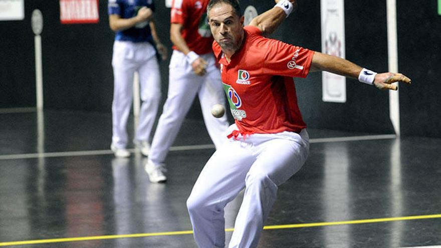 En la refriega, el vizcaino estuvo sustentado por Aimar Olaizola, que sigue a lo suyo, a su ritmo, el del mordisco y el gancho. Un prodigio. Tiene una zurda especial. Nada nuevo. Cada pelota que se acerca a sus dominios, es una sonrisa al viento, una obra de arte efímera. Así, el cóctel estalló sobre sus adversarios. Danel Elezkano, voluntarioso, jugó a contracorriente, argumentando su participación con valentía y arrojo. Pero no pudo más. El desnivel inicial, un 13-4, pidió la cuenta al duelo, que tardó en cerrarse por algunos vaivenes colorados en el entendimiento. Aun así, los yerros de Zabaleta, de menos a más, pusieron cuesta arriba la cita y no hubo premio a un conato de remontada azul, basado en dos tirones que fueron más maquillaje que otra cosa.