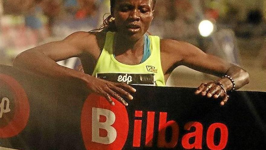 otro récord Esa emoción no se trasladó al medio maratón femenino. Caroline Chebet llegó con un gran cartel y lo corroboró en el circuito bilbaino. Siempre en primer lugar, consiguió un buen margen con respecto a sus perseguidoras y se centró en batir el récord de la prueba. No tuvo rivales, su único adversario fue el cronómetro y también lo derrotó. La keniata cruzó la meta en 1 hora 13 minutos y 35 segundos, lo que supuso el segundo récord batido del día.