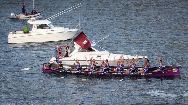 La 'Sotera', líder de la Eusko Label Liga, ha confirmado los pronósticos que le apuntaban como favorita después de una bonita pugna con la tripulación de Zierbena, que ha sido incluso proa de regata en la segunda y la tercera ciaboga.