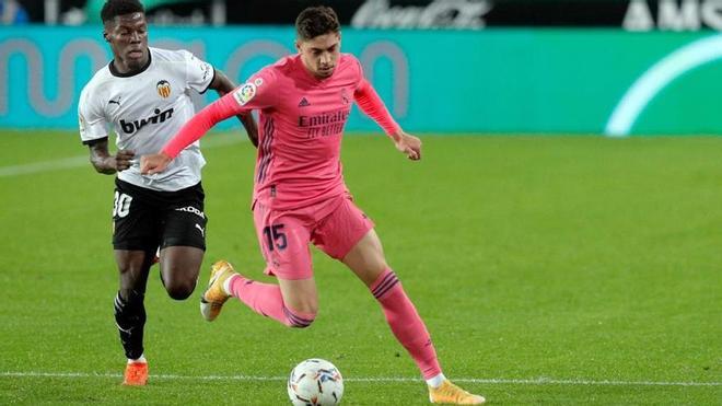 En total, Valverde acumula 810 minutos este curso. En ellos, ha marcado tres goles, todos en LaLiga (Huesca, Barcelona y Betis) y acumula una asistencia. Sus cifras superan a las de Kroos (507 minutos sin goles), Casemiro (765 y un tanto) y Modric (641 y dos dianas).