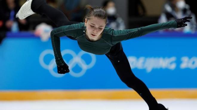 Valíeva, de 15 años, es la primera mujer que ha hecho un salto cuádruple en competición olímpica, tiene el récord mundial de puntuación y es, junto a sus compañeras Anna Shcherbakova y Alexandra Trusova, aspirante al título olímpico.