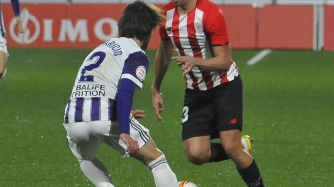 Los cachorros marcaron el ritmo del partido. Diarrá disparó raso pero demasiado cruzado tras una asistencia de Malcom. A la salida de un córner Gere remató desde fuera del área y Paredes desvió el esférico a la red poniendo por delante a los cachorros. Diarrá cabeceó arriba un envío desde la izquierda palmeado por el portero. Los bilbaínos se gustaban. Desde la derecha centró al segundo palo Núñez y Kortazar de cabeza estrelló el balón en el larguero y el esférico después botó en la raya. El Bilbao Athletic se anticipaba una y otra vez al juego de los vallisoletanos. Prados cometió un grave error en la salida de balón que Arroyo no fue capaz de aprovechar. Gerenabarrena tuvo cerca el segundo en un remate a bocajarro que despejó Acebes.