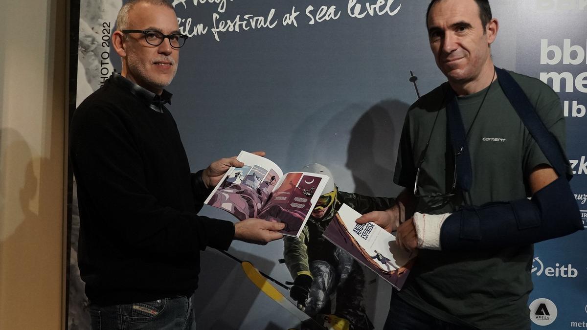Andrés Espinosa (Amorebieta, 1903-1985) escaló los 2.519 metros del Naranjo de Bulnes descalzo y sin cuerda. Superó los 4.809 del helado Mont Blanc con abarcas de goma y unos míseros crampones. Y se hizo los 5.895 del Kilimanjaro, su gesta más celebrada, completamente solo. Pero las hazañas de este alpinista zornotzarra van más allá de los deportivo. Mucho más. Porque Espinosa liberó al montañismo de comienzos del siglo XX de las ataduras económicas. Demostró que con pocos medios, pero ganas y aptitud, se podía conseguir grandes proezas. Y así, sin quererlo ni buscarlo, este vizcaino se convirtió en pionero y referente del alpinismo vasco. En un adelantado a su tiempo. Por ello, para homenajear a su figura y su legado, el BBK Mendi Film Bilbao Bizkaia, certamen patrocinado por DEIA, presentó ayer el cómic Andrés Espinosa. Solo y libre. Una novela gráfica que, a través de las ilustraciones de César Llaguno, el asesoramiento del colorista Fernando H. Navarro y los textos de Ramón Olasagasti, busca rememorar la vida de un hombre que nunca quiso ser reconocido, ni venerado.