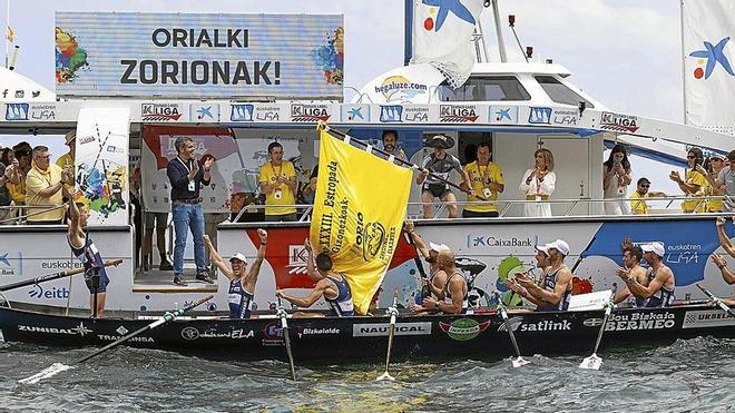 “No se pueden ganar todas las regatas”, afirmaba Iker Zabala, entrenador de Urdaibai, tras finalizar en tercera posición el sábado en Bilbao. Las dudas que pudo provocar la Bou Bizkaia con su rendimiento en la contrarreloj del Nervión se disiparon pocas horas más tarde en la bandera de Orio, donde la trainera de Bermeo volvió a ofrecer su mejor versión para imponerse con claridad a Hondarribia y Donostiarra, con ventajas de 12 y 13 segundos respectivamente. Con la victoria de ayer, Urdaibai escala un puesto en la clasificación general y se sitúa segundo a dos puntos de la Ama Guadalupekoa.