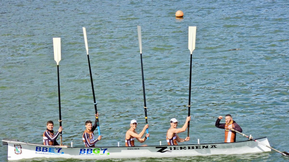 La embarcación de Zierbena se adjudicó la victoria en el campeonato de Bizkaia de bateles disputado en la mañana de este domingo en aguas de la dársena de la Benedicta, en Sestao. El equipo dirigido por Dani Pérez aventajó en 5 segundos al segundo clasificado, Bermeo, en tanto que Isuntza finalizó en tercera posición a 22 segundos, por delante de Deusto y Lutxana. Galipos y bermeotarras protagonizaron una dura pugna por la medalla de oro. Zierbena lideró la regata desde su inicio -3 segundos de ventaja en la primera ciaboga y 4 en la última- y los intentos de su rival por recuperar terreno resultaron vanos.
