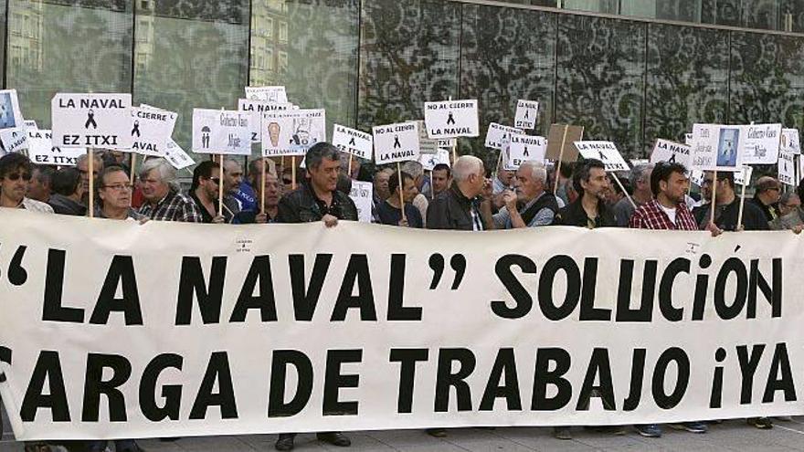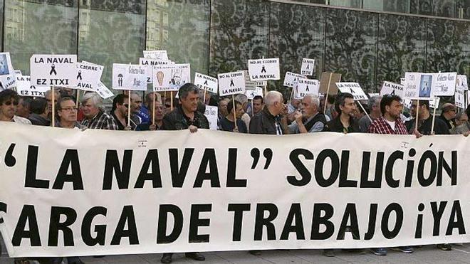 BILBAO. Varias decenas de trabajadores del astillero de Sestao se han concentrado hoy frente a la sede de la sociedad pública SPRI en Bilbao para reclamar carga de trabajo y exigir a la empresa que "redoble" sus esfuerzos para conseguir la contratación de algún buque, tras una pancarta en la que se leía "La Naval solución. Carga de trabajo ¡Ya!".