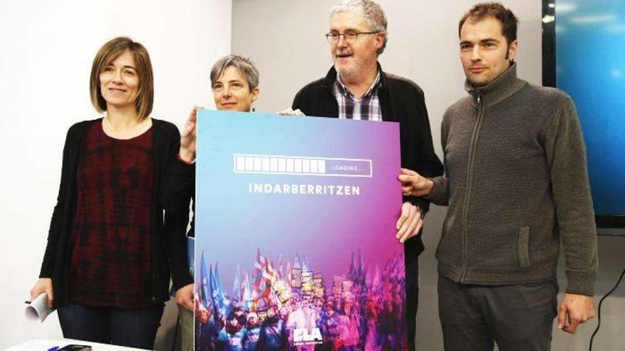 Muñoz ha presentado este lunes en Bilbao, junto a la secretaria general adjunta, Amaia Muñoa, y los responsables de Comunicación e Igualdad de Género, Iván Giménez y Leire Txakartegi, las propuestas que ELA planteará para su XIV Congreso, que celebrará los días 15 y 16 de junio en el Palacio Euskalduna bajo el lema 'Indarberritzen' (Reforzándonos).