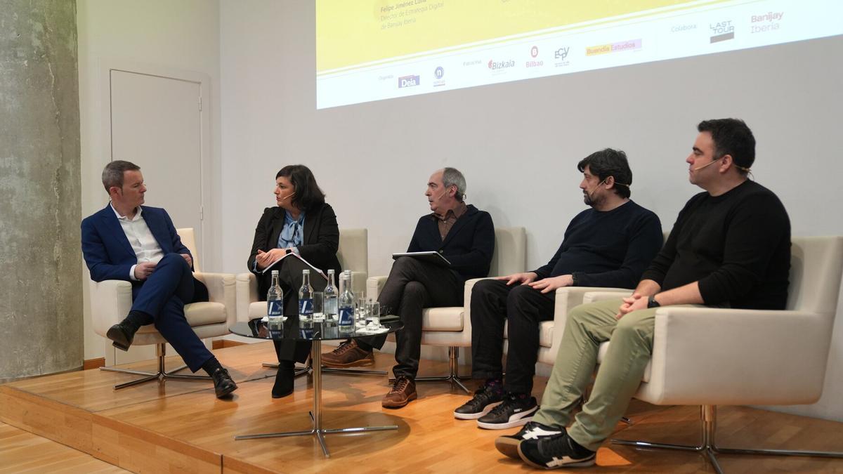 Bajo la batuta y la moderación del periodista Txema Gutiérrez tuvimos la suerte de contar con Ainara Basurko, diputada de Promoción Económica en la Diputación Foral de Bizkaia; Begoña de Ibarra, directora general de Cultura de la Diputación Foral de Bizkaia; Iñaki López de Aguileta, director del Área de Cultura del Ayuntamiento de Bilbao; Felipe Jiménez Luna, director de Estrategia Digital de Banijay Iberia; David Pedrosa, director de la Escuela de Cine del País Vasco; Yurdana Burgoa, CEO de Last Tour; el productor Carlos Juárez, CEO de Basque Films; el director de cine y guionista Mikel Rueda y Laura Abril, directora ejecutiva de Ficción y Desarrollo de Negocio Global de Buendía Estudios.