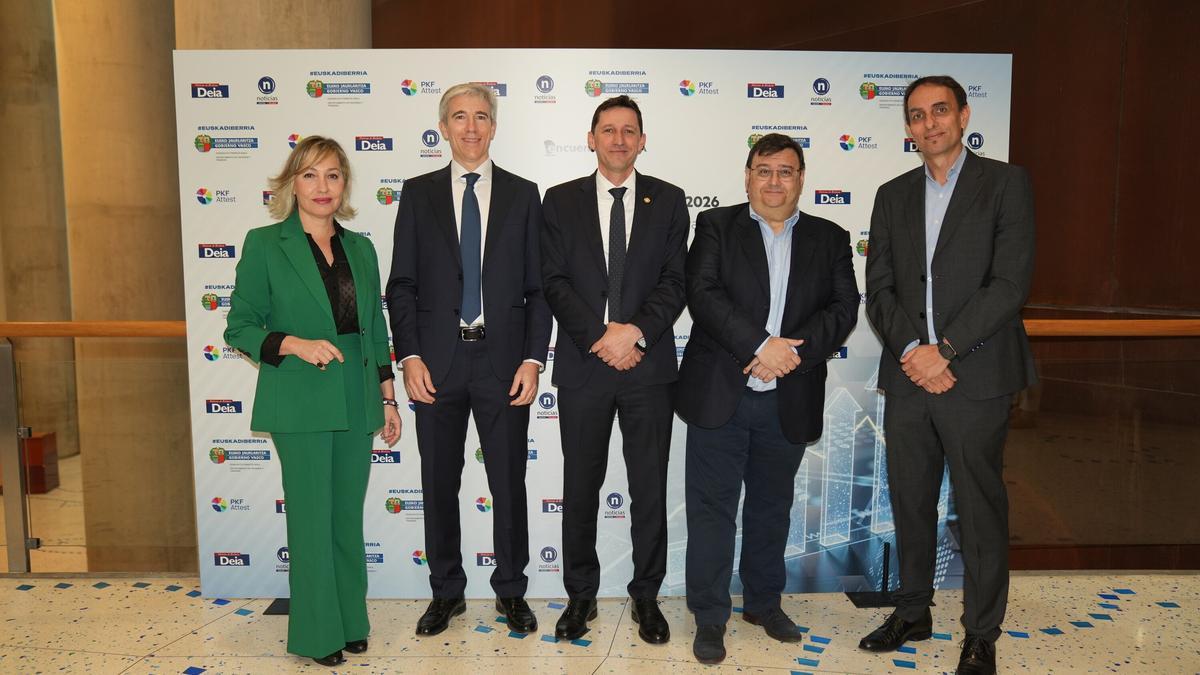Un contexto aceleradamente cambiante estresa a la comunidad internacional, a Europa, a Euskadi y a cada empresa y persona trabajadora. “La incertidumbre ya no es algo que llega y se va, se trata de un concepto que ha venido para quedarse”, subrayó el presentador y moderador del Encuentro, además de director de DEIA, Iñaki González. Destacó el periodista, antes de dar paso al consejero de Hacienda y Finanzas, la importancia de la gestión de las finanzas públicas “para encarar las incertezas y los retos de las transformaciones económicas”.