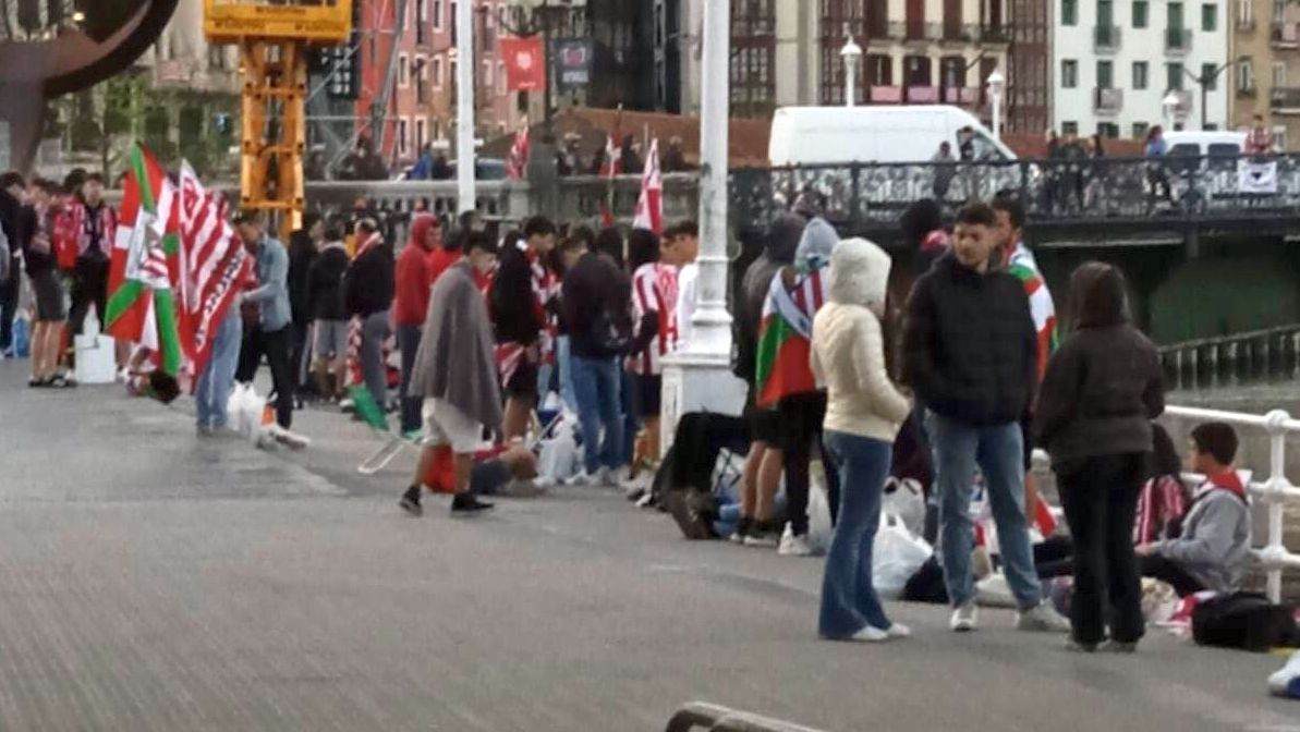 La gente toma posiciones desde primera hora en las inmediaciones del Ayuntamiento para ver la gabarra
