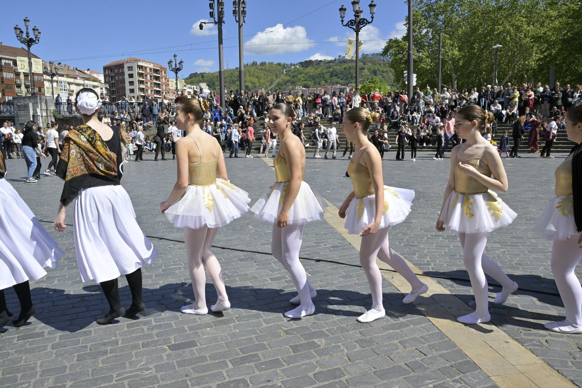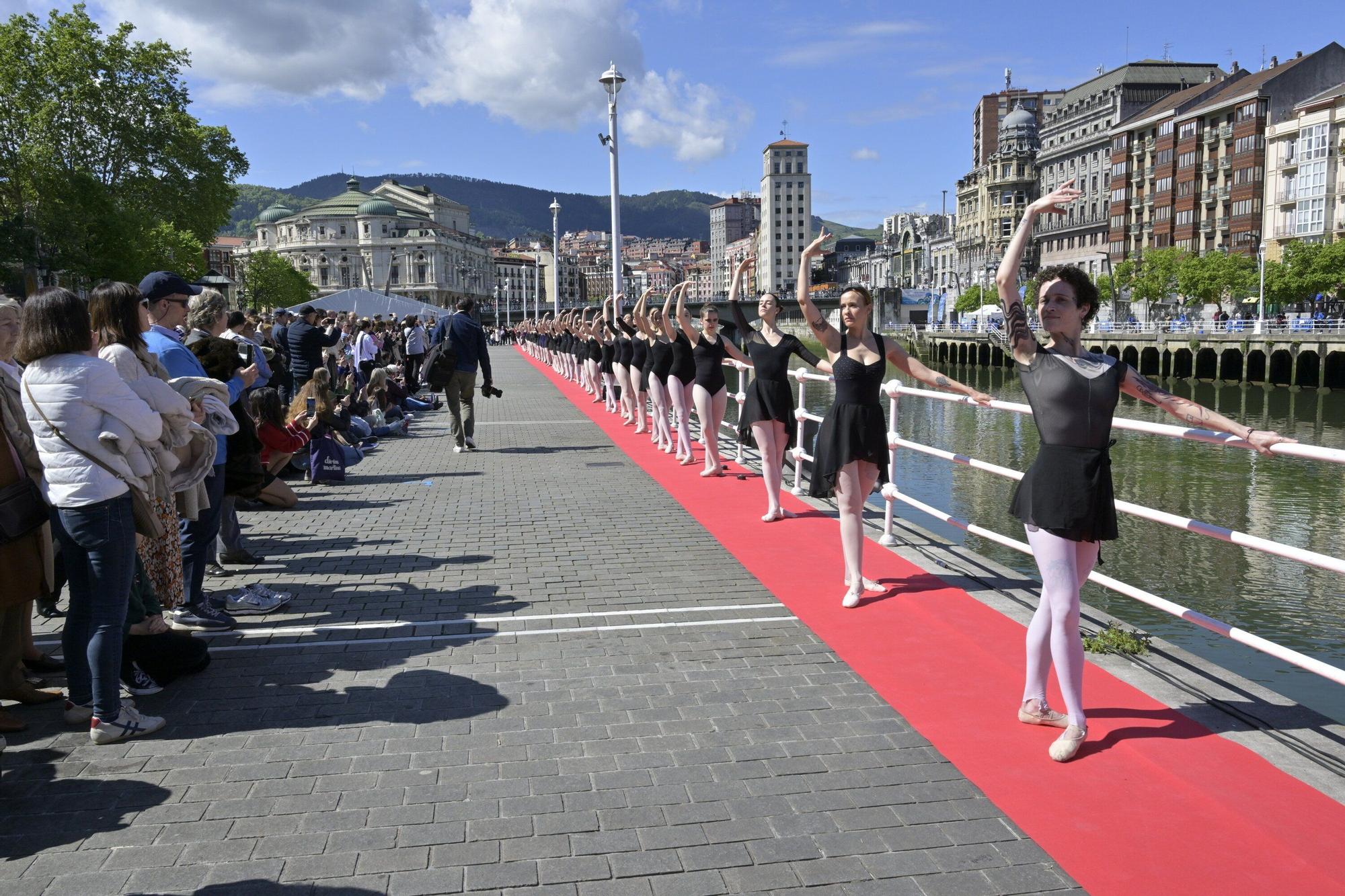 Bilbao se ha rendido este domingo a la danza. Una gran alfombra roja ha dado color a El Arenal bilbaino. Más de 250 bailarines se han sumado al Día de la Danza con diferentes actividades.